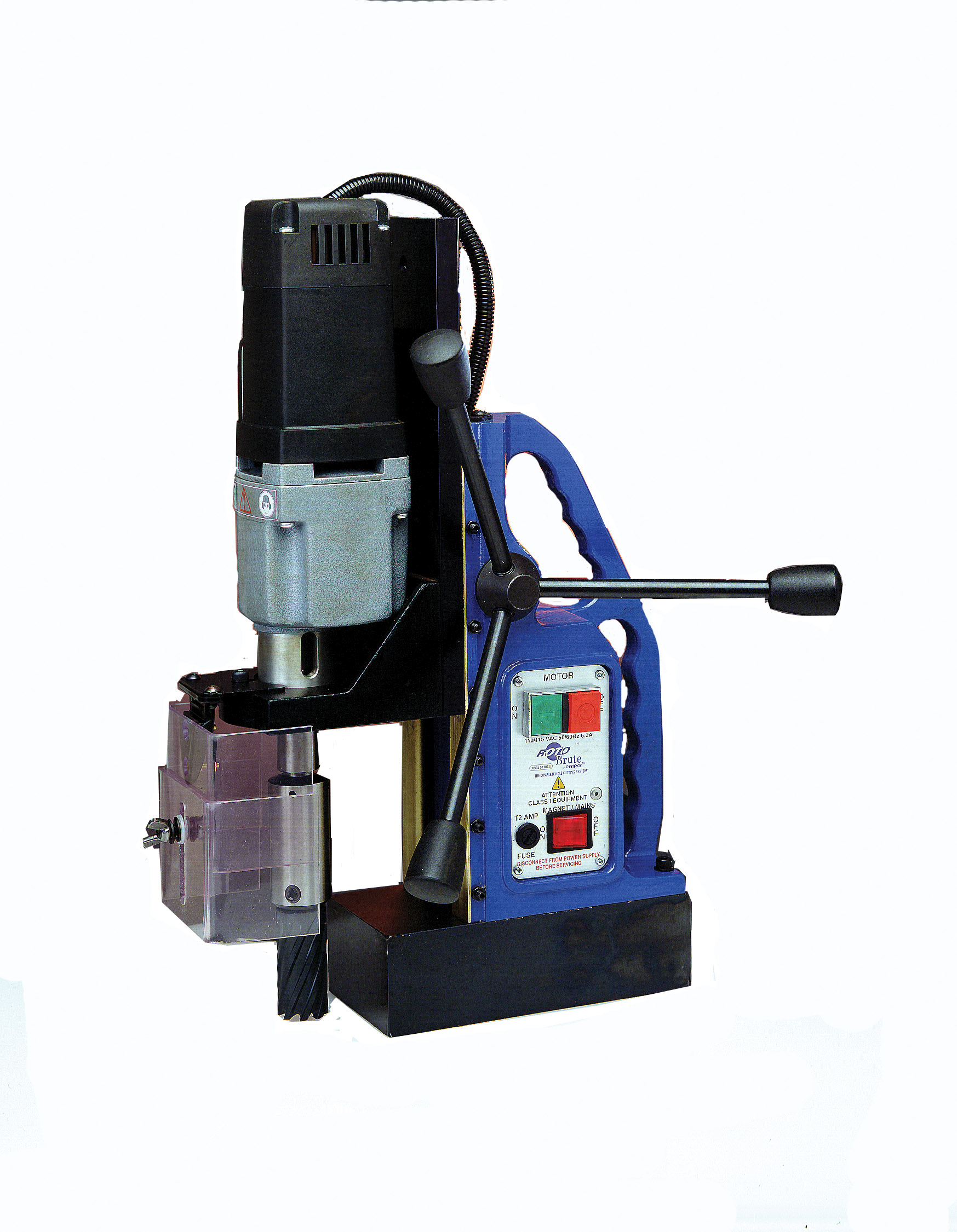Weighs Only 44 Lbs. Cutter Capacity: 2″ Diameter X 2″ Depth. Built-In Fluid Reservoir, Reversible Feed Handle And 8″ Vertical Travel. Benefits- Much Lighter Than Machines With Less Cutter Capacity. Greater Capacity Than Machines Weighing Much More. Delivers The Coolant To Work Place And Cutter. Left Hand Use And Operating In Restrictive Areas. Utilize S&D Drills Up To 1″. Champion Rotobrute Mightibrute Magnetic Drill Press Champion’s Rotobrute Magnetic Drill Presses Are Durable And Easy To Use. From The Compact Rb30 Low-Profile Unit To Our Rb65E Megabrute, Each Model Is Designed For Years Of Performance.